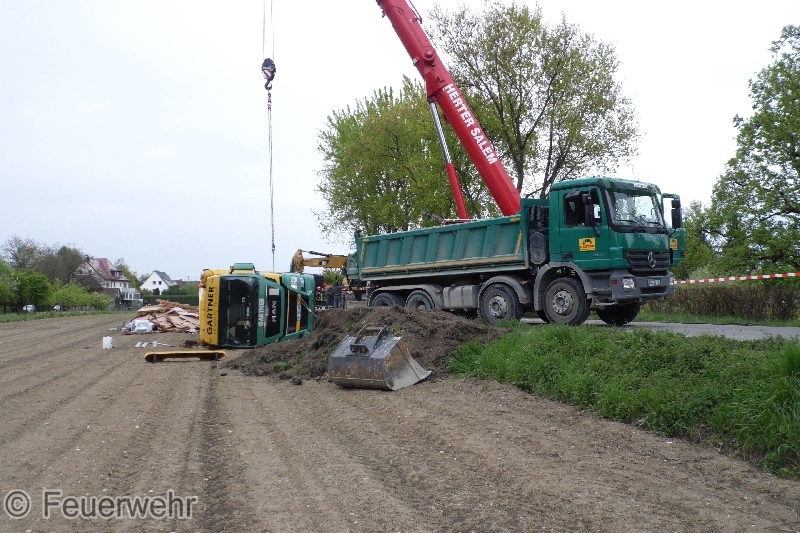 Um das Fahrzeug wieder aufrichten zu können, musste der Auflieger komplett entladen werden. Dies konnte nur von Hand erfolgen, weshalb sich der Einsatz mehrere Stunden hinzog. Unterstützt bei der Bergung wurde die Kräfte durch ortsansässige Firmen, welche Stapler, Paletten und LKW mit Anhänger zur Verfügung stellten um die Ladung zu bergen. Gegen 17:00 Uhr konnten dann Mitarbeiter der Salemer Firma Herter die Bergung des Sattelzugs durchführen. Hierfür wurde eine provisorische Rampe errichtet und Zugmaschine mit Auflieger mit einem 90 Tonnen Kran aufgerichtet. Schließlich musste ein Teil des Erdreiches abgetragen werden, da aus dem Tank des Unfalllasters größere Mengen Diesel ins Feld liefen.
