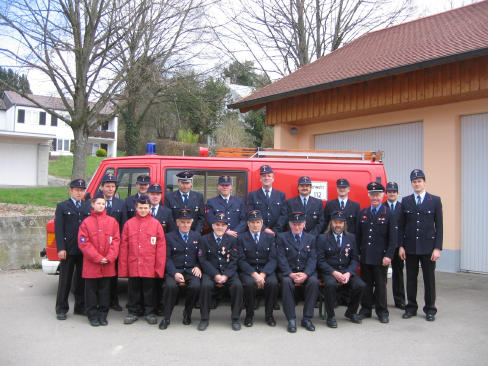 Die Abteilung Mittelstenweiler noch vor dem alten Tragkraftspritzenfahrzeug.. Mittlerweile wurde dieses Fahrzeug durch ein LF 8/6 ersetzt.